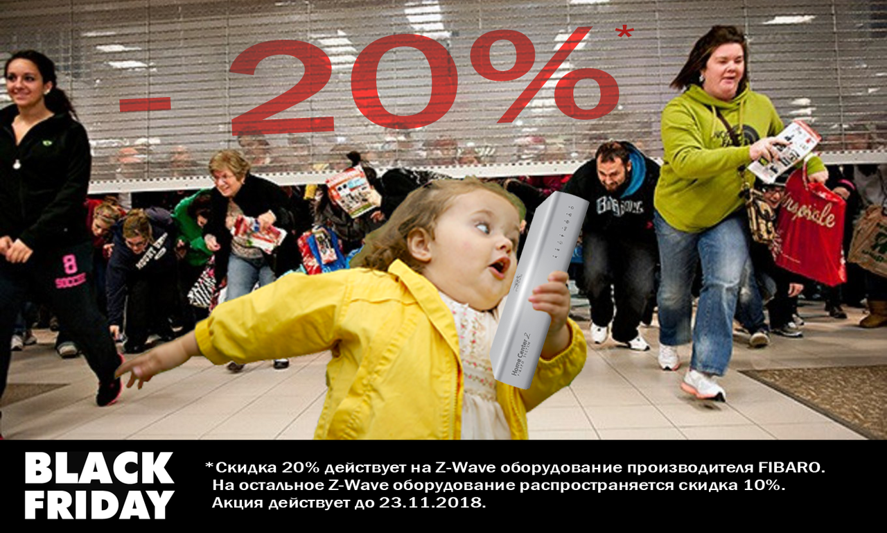 BLACK FRIDAY 201820 листопада 2018Не будемо, як всі, примушувати вас чекати п'ятниці, починаємо грандіозний розпродаж прямо зараз! Знижка до 20% надається на обладнання виробника FIBARO. На решту Z-Wave обладнання діє знижка 10%. Акція триватиме до 23.11.18 включно.Black Friday на Z-Wave.com.ua!07.11.2025Black Friday на Z-Wave.com.ua!АКЦІЯ: Яскраве літо з Nanoleaf та Fibaro!15.07.2025АКЦІЯ: Яскраве літо з Nanoleaf та Fibaro!